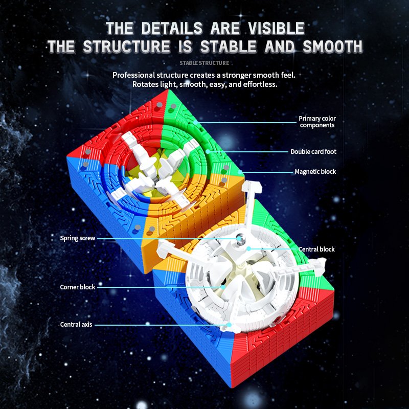 Mechanically, the MoSheng 12×12 is engineered for both beginners to high-order cubes and experienced speedcubers. Its layers turn cleanly, and the core and piece geometry are optimized to reduce internal friction. While some advanced solvers may fine-tune tensions and add custom lubrication, many users will find the out-of-box performance excellent for practice, competition, and display.